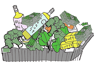 My daughter thought this looked like a garbage can of groceries. It is supposed to be a grocery cart. Have I mentioned that I have no formal artistic training?